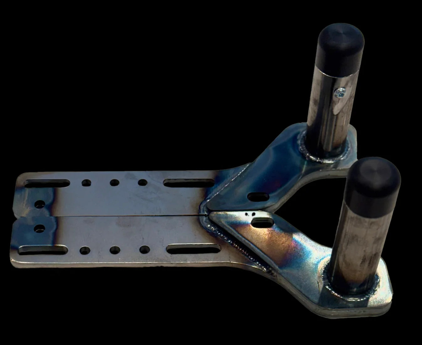 - Pegs are welded THROUGH the front 1/2 inch thick steel. No more broken shock bolts!